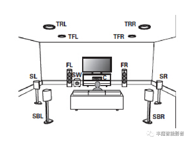 杜比全景聲7.1.4聲道家庭影院系統(tǒng)中各個音箱的作用
