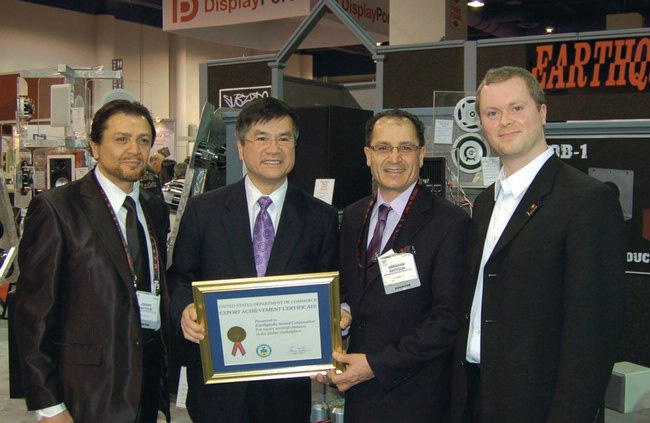 3.2013年4月12日,美國(guó)駐上??傤I(lǐng)事館商務(wù)官員Sarah Fox女士受美國(guó)政府商務(wù)部委托向美國(guó)Earthquake大地震頒發(fā)美國(guó)出口獎(jiǎng),以表彰Earthquake大地震一直致力于為全球用戶制定創(chuàng)新的音頻解決方案,產(chǎn)品出口至全球50多個(gè)國(guó)家,并獲得良好的出口業(yè)績(jī)。